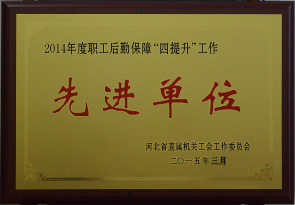 年度職工后勤保障“四提升”活動中,被河北省直屬機關工會工作委員會評為省直系統先進單位。
