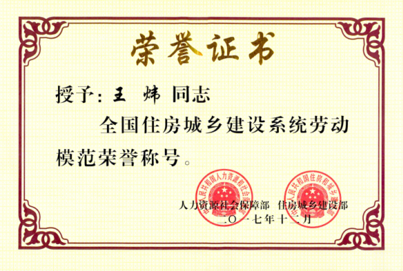 為進一步激勵全國住房城鄉建設系統廣大干部職工的積極性和創造性,努力推動住房城鄉建設工作上新臺階,人力資源社會保障部、住房城鄉建設部在全國住房城鄉建設系統內,開展了先進集體和先進個人的評選活動。通過逐級推薦,由人力資源社會保障部和住房城鄉建設部最終審定,決定對197個先進集體,381名先進工作者,414名勞動模范進行表彰。我公司工會主席王煒同志榮獲全國住房城鄉建設系統勞動模范榮譽稱號?!?/span>