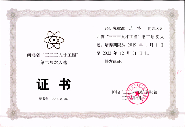 經公司推薦,河北省人力資源和社會保障廳組織評審,河北省“三三三人才工程”領導小組批準,地下工程公司首席工程師王偉榮獲河北省“三三三人才工程”第二層次人選。