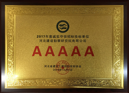 近日,我公司被河北省建設(shè)工程招標(biāo)投標(biāo)協(xié)會(huì)評(píng)為2017年度河北省建設(shè)工程招標(biāo)投標(biāo)誠(chéng)實(shí)守信5A級(jí)施工企業(yè)。