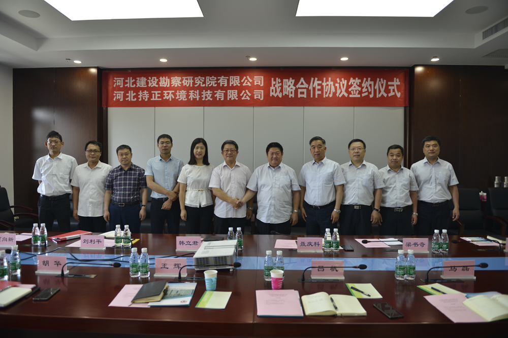 2020年6月4日,公司董事長韓立君、總工程師聶慶科、副總經理劉利平,接待了持正集團王輝董事長一行,雙方在我公司簽訂了戰略合作協議。合作簽約儀式由總工程師聶慶科主持,副總經理劉利平代表公司簽約,工程勘察公司梁書奇、王英輝、賈向新參加了會議。
