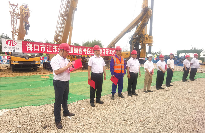 儀式由集團公司九公司書記朱興旺主持,海南房地產公司經理陳家勇、九公司經理劉云峰、海南華建工程監理咨詢公司總經理袁俊炫、項目經理鄭成果分別致辭發言,共同見證了這一激動人心的時刻。中元國際設計院建筑院長陳金星、九公司副經理周文龍、商貿二公司副書記張留栓、物業公司副經理田立男等參加了開工儀式。