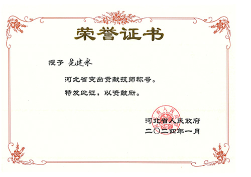 經(jīng)公司組織申報,河北省工程勘察設(shè)計咨詢協(xié)會、河北省民政廳推薦,河北省人力資源和社會保障廳組織評審,河北省人民政府決定,公司范建永同志榮獲河北省突出貢獻技師稱號。