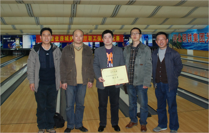11月10日,河北省住房和城鄉建設廳職工保齡球比賽在太行賓館保齡球館火熱開賽。我公司派出陳寧、王永周、胡建林、王利鋒、唱曉剛組成的河北建勘保齡球隊,角逐男子團體和個人排名賽。在熱火朝天的比賽中,我參賽選手士氣高漲,在比賽中學習揣摩,在比賽中實踐,最終在這項完全陌生的運動項目中獲得總分1200分,取得了團體第三名的好成績。